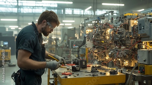 engineer, machinery, industrial, maintenance, inspection, precision, tool, grease, workwear, lighting, cinematic, hours, gold, sharpened, gaze, technician, mechanic, factory, workshop, equipment, repair, service, diagnostic, analysis, manufacturing, production, process, automation, technology, engineering, mechanical, conceptual, professional, detailed, skilled
