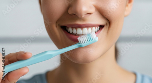 Focused Woman Brushing Her Teeth During Morning Routine