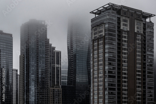 building, city, architecture, business, skyscraper, urban, sky, office, skyline, downtown, tower, building, blue, glasses, tall, city landscape, construction, skyscraper, high, corporate, center, apartment, district, chicago, fog