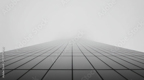 skyscraper, fog, city, building, abstract, architecture, business, urban, modern, grey, low, angle, perspective, vanishing, point, high, rise, metal, glasses, line, texture, design, background, monotone, monochrome, image, photo, minimal, simple, clean, contemporary, geometric, pattern, structure, elegance, power, ambition, success, future, hope, progress, development, growth, innovation, technology