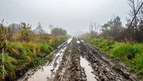 fog, mud, pathway, landscape, autumn, nature, moisture, grass, puddle, dirt, rural, weather, earth, travel, adventure, outdoors, scenery, environment, marsh, overcast, calmness, wetland, dirtied, road, plant, foliage, path, wild, serene, vegetation, countryside, field, mist, seasonal, journey, exploration, ground, beauty, photographic, scenic, horizon, natural, wilderness, terrain, atmospheric, weathered, growth