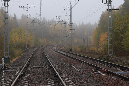 foggy railway in the bend