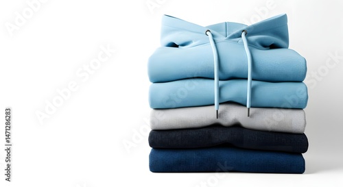 Folded Hoodies Stacked Neatly on White Background Apparel