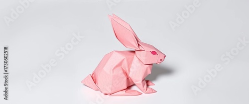 Folded origami paper rabbit, intricate details, white background, bunny, animal