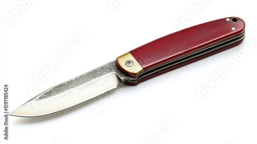 knife, pocket knife, blade, sharp, metal, handle, red, wood, steel, tool, folding, cut, brass, open, close, edge, point, mechanism, portable, equipment, single, isolated, white, background, weapon, defense, protection, dangerous, vintage, antique, traditional, hand-made, rustic, old, style, retro, survival, outdoors, camping, hunting, accessory, collectable, detail, closeup, security, personal, safety, strength