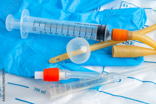 Foley catheter and urine drainage bag collect urine for disability or patient in hospital.