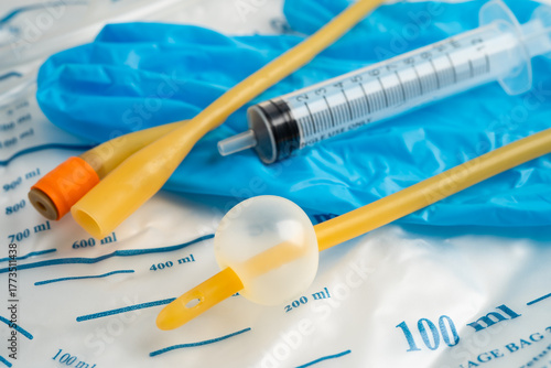 Foley catheter and urine drainage bag collect urine for disability or patient in hospital.