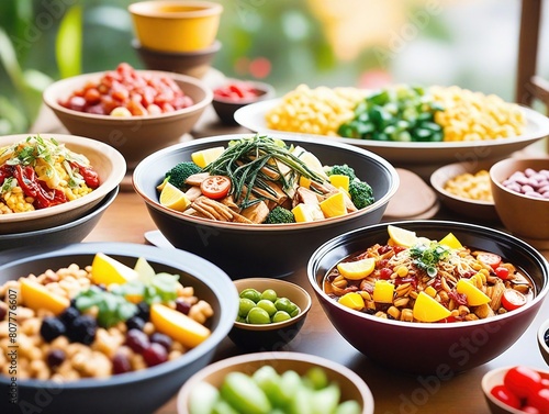 background, texture, decoration, pattern, abstraction, art, creativity, design, wallpaper, concept, style, poster, imagination, abstract, food, salad, meal, dish, table, dinner, eatery, vegetable, plate, cookery, buffet, healthy, delicious, lunch, meat, epicure, fresh, rice, red, bowl, diet, tomatoes, breakfast, white