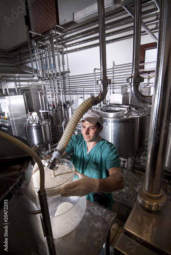 industry, food, factory, milk, dairy product, cheese, organisation, storage tank, steel, pipe, yogurt, engineering, clean, liquid, automated, cold, business, working, warehouse, metal, silver, tube, pasteurization, refrigeration, aluminium, pouring, manufacturing, italian food, italy, man, male, coat, glove, green, hand, hand, hygiene, latex, power, prevention, white, control, analysis, controlling