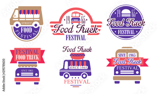 Food Truck Festival Labels Set, Street Food Vintage Badges Vector Illustration