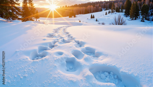 footprint, snow, winter, landscape, sunset, nature, cold, serene, tranquil, sunlight, evening, wood, forest, exploration, peaceful, secluded, hiking, journey, season, calm, morning, wildlife, adventure, scenery, snow-covered, white, horizon, tree, stillness, frost, cold weather, natural, beauty, tranquil scene, pristine, untouched, winterly, snowfield, wilderness, ice, crystal, quiet, magical, outdoors