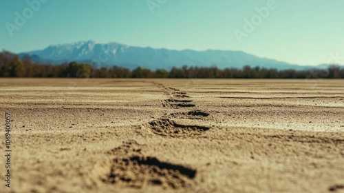 footprint, desert, landscape, mountain, distant, sand, terrain, horizon, nature, travel, adventure, solitude, exploration, trail, path, scenic, arid, wilderness, outdoors, journey, environmental, trekking, natural, huge, tranquil, empty, expanse, barren, dry, uninhabited, remote, serene, trek, explore, peaceful, picturesque