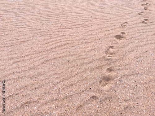 Footprints on the sandy beach reflecting calm and solitude