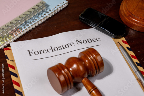 Foreclosure Notice Document with Gavel on Legal Desk