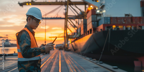 engineer, people, business, industry, transportation, factory, logistic, truck, day, cargo, trade, delivery, freight, shipping, warehousing, storage, transport, warehouse, men at work, industrial, port, terminal, work, container, berth, technology, car, examine, facility, good, heavy, horizontal, infrastructure, photograph, deliver, trade, uniform, exploitation, complex, handling, transit, unloading, computer, crane