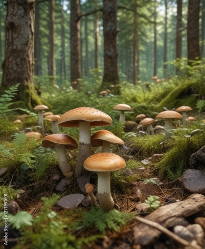 Forest forest floor with boletus edulis mushrooms in summer , floor, mushrooms, growth