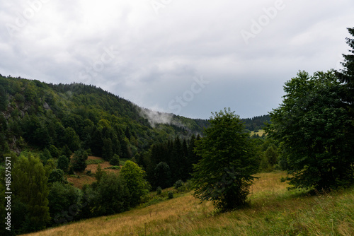 landscape, nature, sky, mountain, forest, tree, mountain, cloud, green, summer, grass, tree, hill, view, pine, meadow, cloud, travel, rural, autumn, field, road, day, blue, countryside