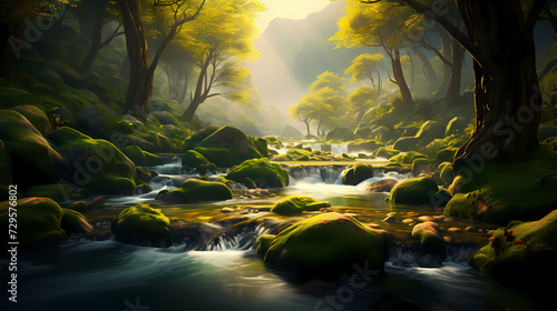 forest, tree, oasis, mist, jungle, plant, vegetation, natural, watercolor, fir, ink, autumn, spring, mountain, moss, green, lush, dense, fog, sunset, sunrise, landscape, illustration, background, wallpaper, banner, morning, black-and-white, pattern, abstract