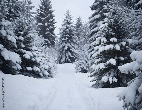 Forest landscape snow covered pine trees winter new year Christmas celebration