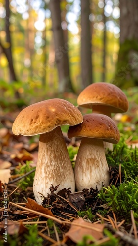mushroom, forest, autumn, nature, fungal, outdoors, wild, edible, closeup, macro, growth, wood, brown, moss, leaf, pine, sunlight, detail