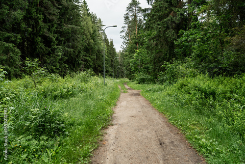 forest path through lush green vegetation, dirt trail in summer woodland, peaceful outdoor hiking route, scenic nature walk, wild greenery, travel background, forest exploration, countryside atmospher