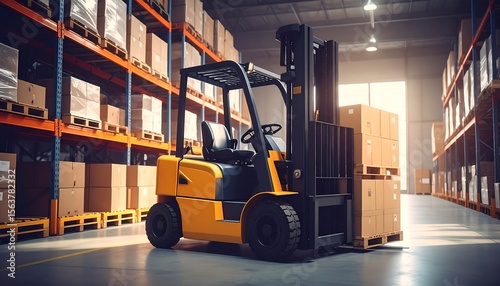 forklift, warehouse, logistic, storage, inventory, shipping, delivery, distribution, cargo, box, package, pallet, industrial, machinery, equipment, manufacturing, commerce, business, transportation, loading, unloading, interior, depot, merchandise, management, processing, product, stock, shelf, stacked, commercial, workplace, indoor, facility, large, good, moving, lifting, fulfillment, operation