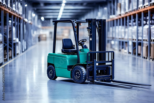 forklift, warehouse, industrial, logistic, distribution, storage, shipping, freight, delivery, transportation, cargo, pallet, industry, machinery, equipment, factory, aisle, interior, building, business, commerce, retail, wholesale, inventory, good, product, heavy equipment, industrial building