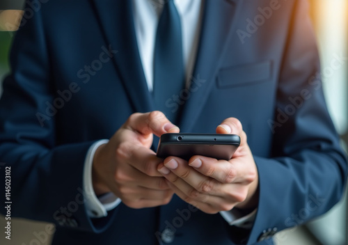 formal man holds smartphone edge computing one hand wearing formal