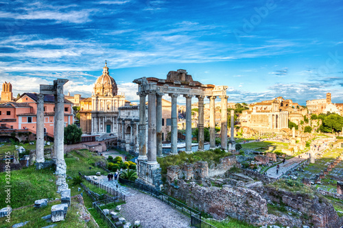 Forum Romanum Illuminated by Colorful Sunset with Bright Clouds, Rome