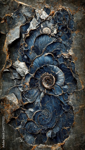 ammonite, shell, spiral, fossil, texture, dark blue, rock, fossilized, pattern, abstract, slate, stone, layer, macro, decoration, art, sandstone, fractal, nautilus, nature, coral reef, prehistoric, cracked, grimy, grunge, intense, vibrant, abalone, swirl, seashell, elaborate, coiled, natural, gemstone, geology, unique, midnight, indigo, shimmering, prussian, ridge, pitted, generative, ai, generated