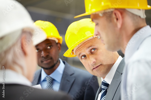 4, architect, negotiating, work, business, man, businessman, group, people, industry, construction, building, factory, plant, men at work, excursion, supervisor, african, production, facility, protective, helmet, meeting, talking, discussion, explaining, listening, guide, tour, giving, inspector, occupation