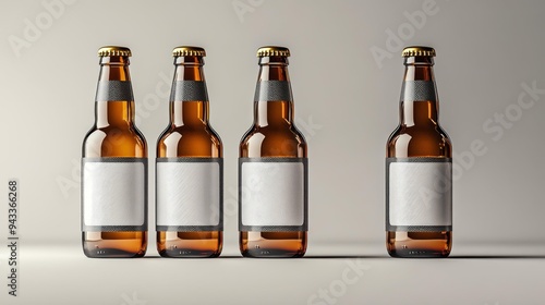 Four Blank Beer Bottles Mockup Generative AI