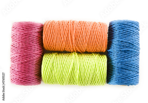four colorful cord spools