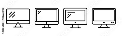 monitor, computer, display, icon, screen, technology, device, vector, outline, electronic, pictogram, symbol, desktop, illustration, graphic, modern, minimalist, interface, hardware, digital, web, equipment, communication, cyberspace, 4, set, collection, different, connection, corporate, office, work, programming, coding, network, connectivity, datum, application, app, signs, flat, line, simple, video, media, contraption