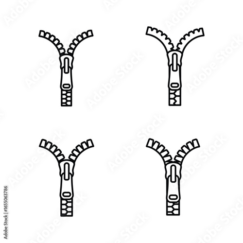 zip, zip, illustration, drawing, line art, black-and-white, sewing, textile, apparel, accessory, open, closing, fastener, fastener, seam, zip, zipping, unzip, unzip, stage, various, different, type, style, simple, minimalist, icon, icon, graphic, vector