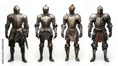 Four Knights in Full Plate Armor Standing in a Row