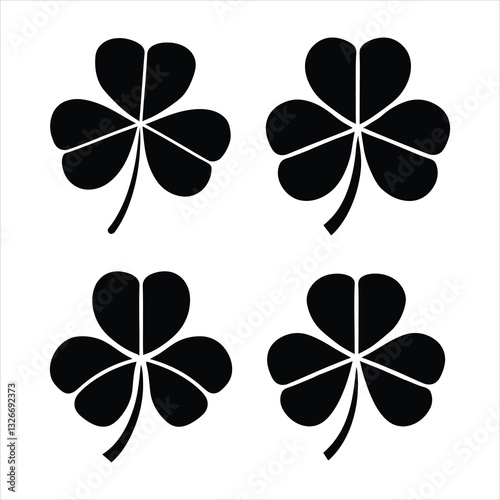 Four Leaf Clover Icon Set. Lucky Shamrock, St. Patrick’s Day Symbol, and Irish Fortune Vector.