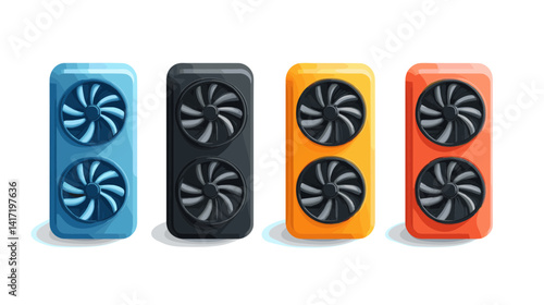Four Pixel Art Cooling Fans in Blue, Black, Orange and Red