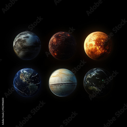 four rows of five planets, different textures and types, SWTOR art style, black background --v 6.1 Job ID: 4082d2d1-fe13-4543-b0d1-19078bf6e332