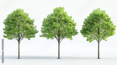 4, tree, realistic, green, leaves, vary, shape, size, show, white, flower, nature, shadow, beauty, season, sunlight, foliage, landscape, rural, detail, background, image, garden, present