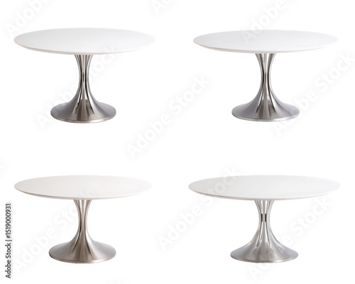 table, table, oval, white, silver, metal, footed, tulip, furniture, modern, contemporary, design, interior, decor, home, dining, hot drink, round, minimalist, clean, simple, elegant, stylish, chrome, steel, set, 4, arrangement, grid, background, transparent, isolated, object, product, asset, stock, photo, image, clip art, illustration, graphic, design element, decorative, home decor, interior design