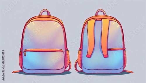 Four-sided school bags, front, back, side views; outline illustrations, outline, bag