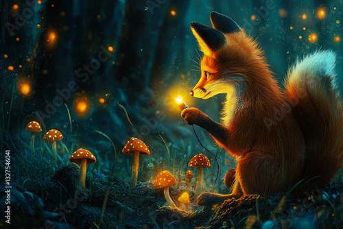 ai, generative, autumn, enchanted, fairy tale, fantasy, fantasy art, forest, forest floor, fox, glowing, illuminated, magical, mystical, nature, night, outdoors, peaceful, whimsical, wildlife, timberland