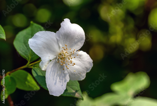 Fragrant jasmine bloomed. The bush is covered with white flowers.