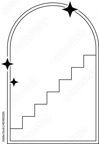 Frames collection with different stars. Minimalistic linear frames, arches, elements, geometric shapes and lines. Arch frame with sparkles Frames for poster design, vector illustration in modern style