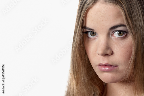 woman, headpiece, blurred, topview, blond, attractive, listening, eye, brow, music