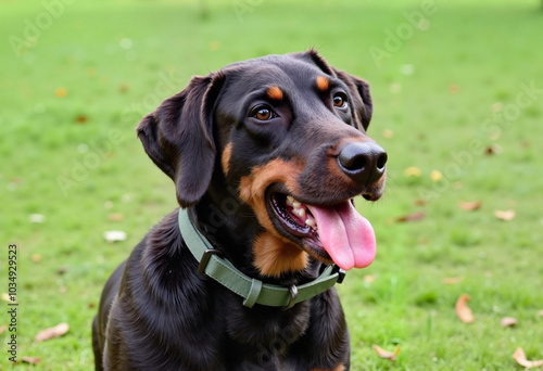 doberman, dog, sitting, grass, happy, pet, healthy, playful, summer, canino, smiling, nature, loyal, obedient, companionship, animal, relaxed, energetic, guard dog, friendly, fun, fitness, panting