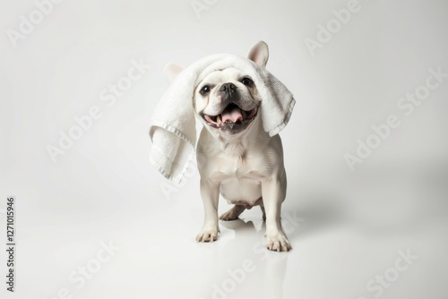 facial expression, domestic animals, grey background, french bulldog, animal head, photo, studio shot, background, mouth open, one animal, full body, grooming, isolated, portrait, bulldog, concept, holding, lap dog, maltese, animal, canino, french, mammal, happy, humor, mouth, towel, white, image, photo, body, cute, full, grey, dog, fun, pet, pug, wet
