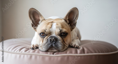 French Bulldog Puppy Resting on Soft Bed in Cozy Indoor Setting