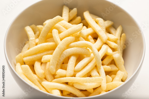 French fries Snack food crispy potato salty. Fast food or junk food snacks unhealthy concept.
